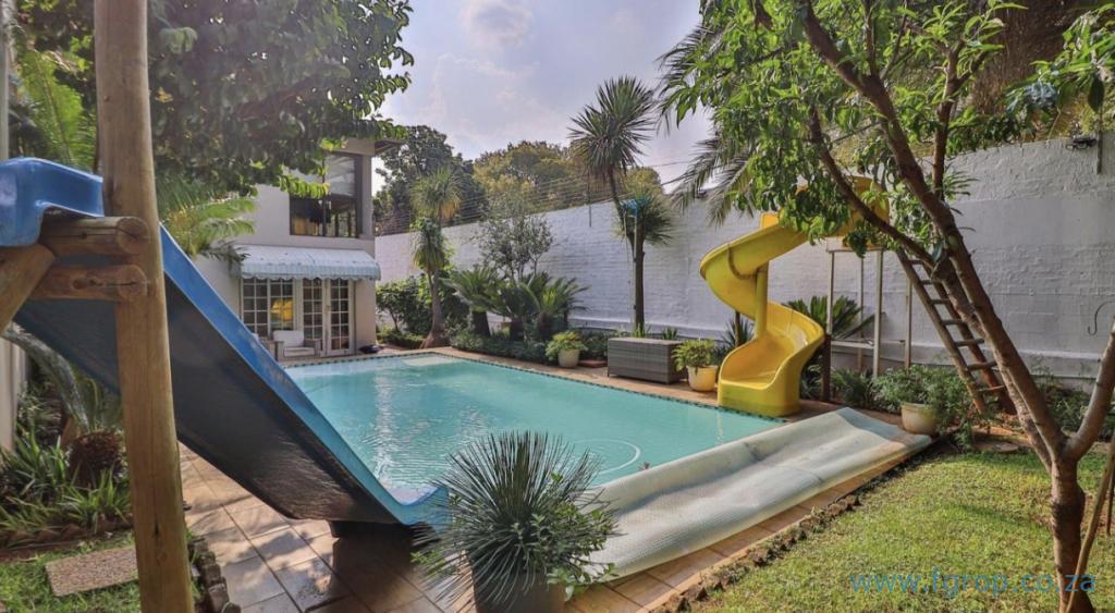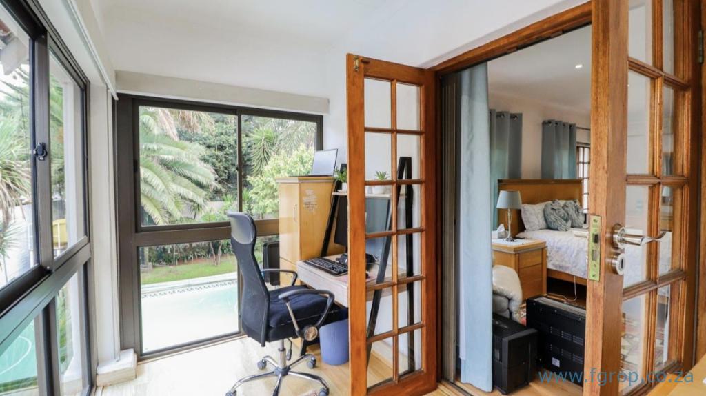 Accommodation Includes: - 4 spacious bedrooms with built-in cupboards - Master suite with private en-suite - 3 additional bathrooms for convenience and flexibility - 3 lounges, a study room, and an upstairs sunroom with serene garden and pool views